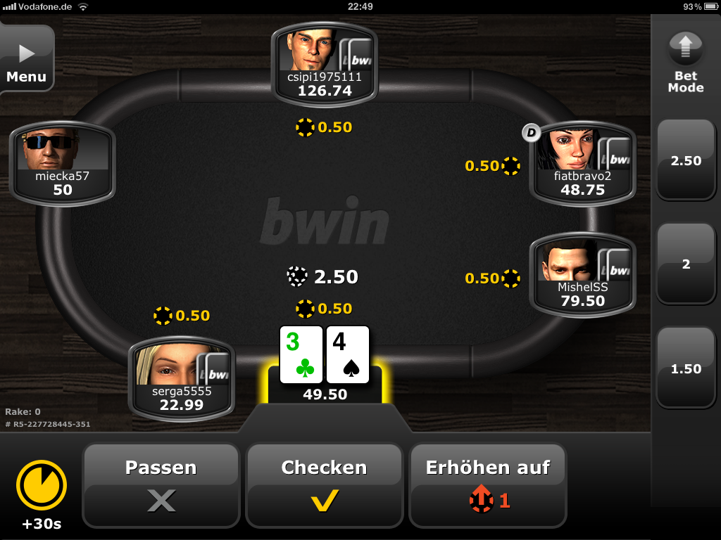 Sázková kancelář bwin spustila pro tablety iPad novou aplikaci Poker. Uživatelé těchto tabletů si nyní mohou zahrát skutečný Texas Hold’em poker o skutečné peníze. Aplikace je založena na stejně jednoduchých principech jako její obdoba pro iPhone (poprvé představena v lednu 2011) a pro mobilní telefony s operačním systémem Android (z července 2011).